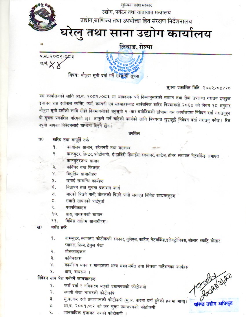 मौजुदा सूचि दर्ता गर्ने सम्वन्धी सूचना